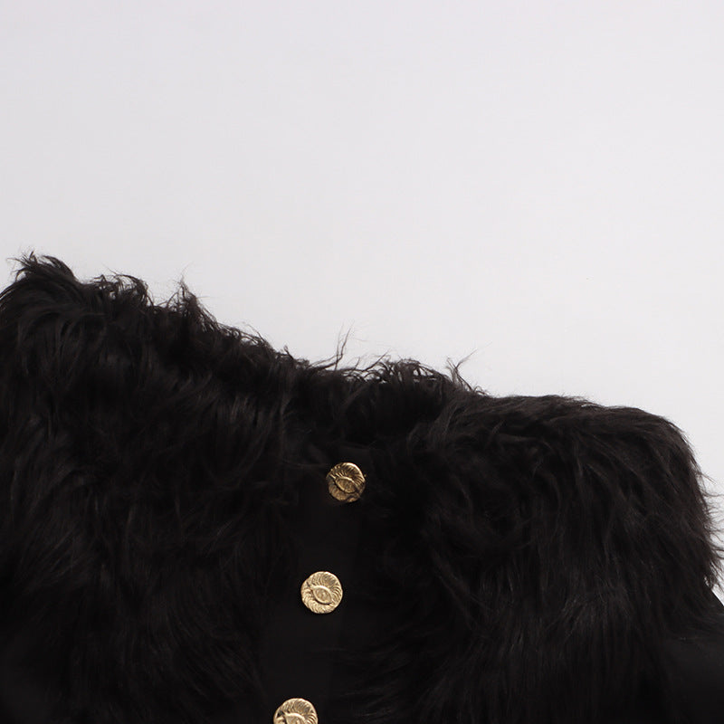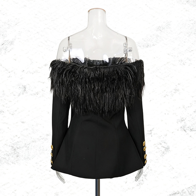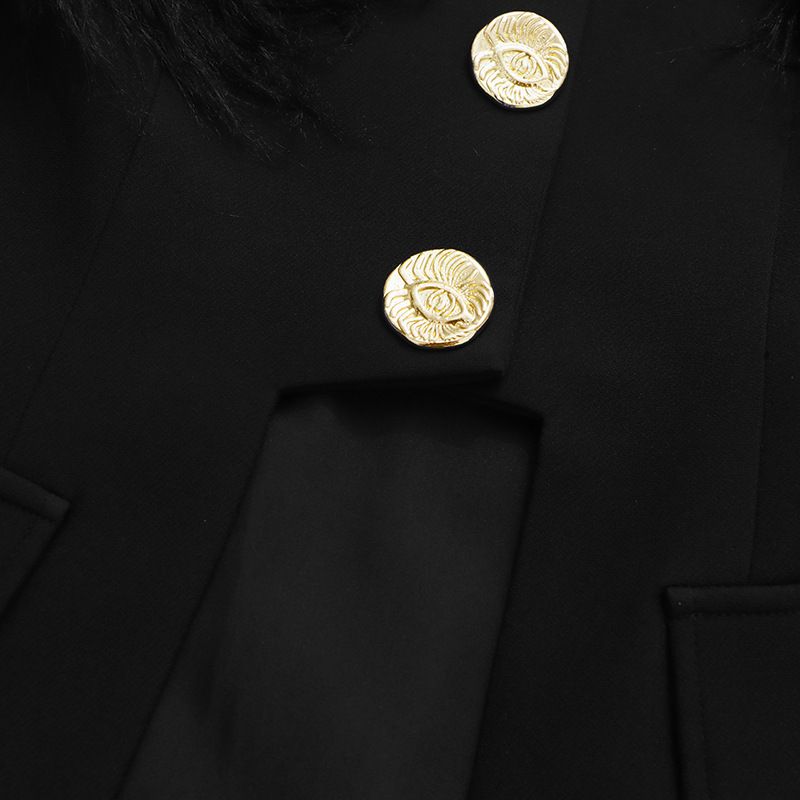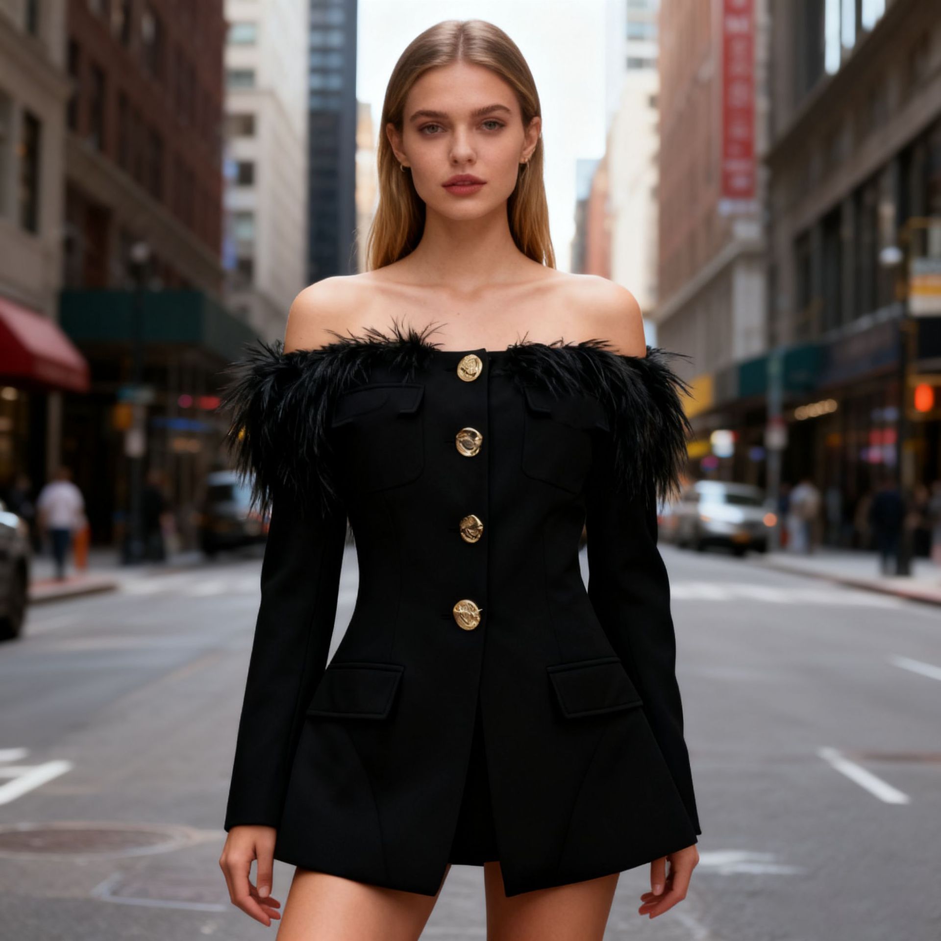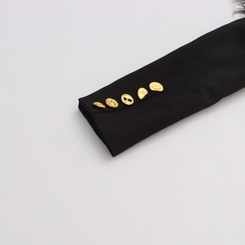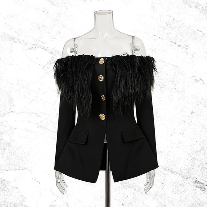 One shoulder feather metal buckle decoration waist cinching long sleeved jacket for women